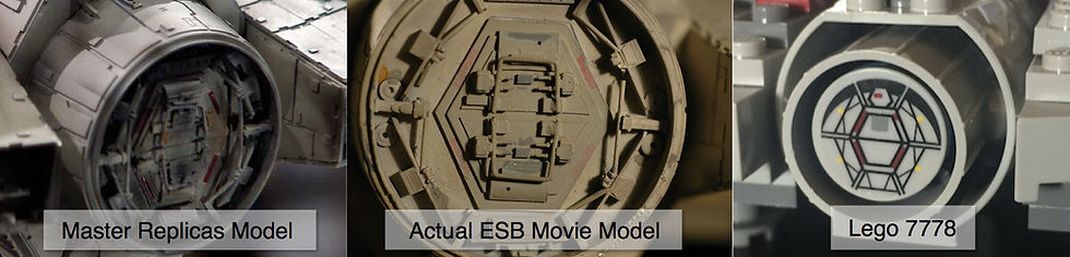 I took the time to look at the real actual photos of the models used in the Empire Strikes Back and other detailed replicas and compared with what Lego has done to emulate the key pieces that give the element of realism. I truly believe that this build with the limitations they had, the designers are true Star Wars fans. Take a look at some of the photo comparison shots that I have and you will notice that the cockpit and the side escape pods stickers really emulate the real models. I really have to give the guys a thumbs up for the details, even though they’re just stickers, they show the dedication. The overall shape and built takes the form of the original vehicle and I think for a 300 piece set, this does it justice.