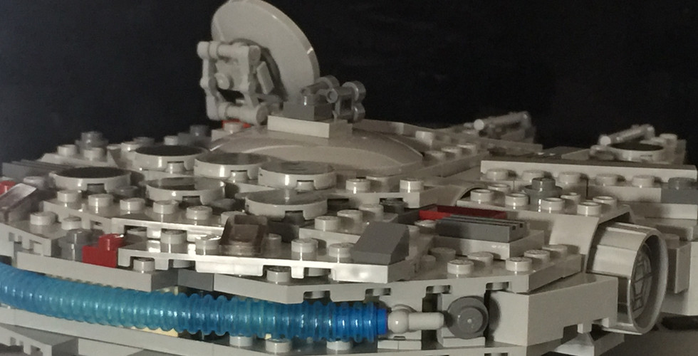 There’s one part that I particularly liked as a finishing touch to the Falcon. The “afterburner” which is made up of an element called the 112mm corrugated pipe. This is a sort-of-unique piece as its a one of a kind. Yes, you may say that I’ve seen it in the 2011 (7695 release) or the 2015 (75105) release, but the two newer releases has it a little longer at 152mm. So, technically its the only set which has the 112mm transparent light-blue technic tube. In any case, I felt that this nice blue amongst the grey made the difference between a “swooshable” and presentable YT-1300 and one that sits on your desk as a showpiece.
